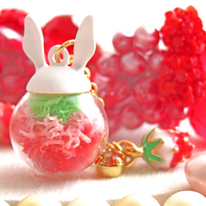 白うさぎといちご【ガラスドームピアス/イヤリング】