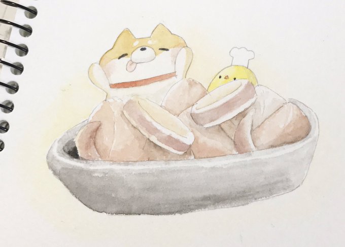ホクホクやきいもやさん!皮なしなめらかな カップやきいも はいかがでしょう(*´◒`*) #柴犬 #イラスト好きな人と繋がりたい #水彩