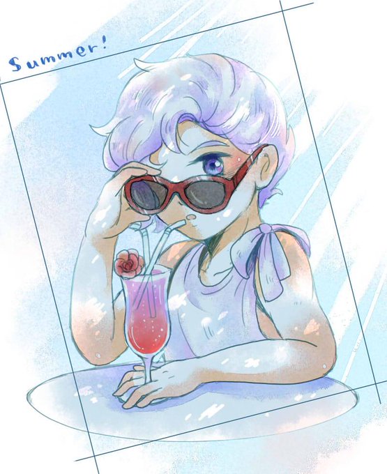 明日から7月ということで夏らしい絵を描きたくなったので、キャスバルとちびガルマちゃんです はやくオリジン見たいので秋になれ~