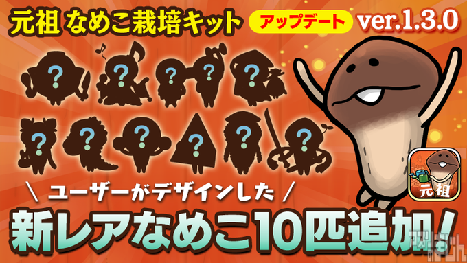 ビーワークス、放置型SLG『元祖 なめこ栽培キット』にて新種レアなめこ追加のver.1.3.0アップデートを実施!これを記念して「15分間、生えてくるなめこが全部レアなめこ」になるスペシャルアイテムを特設サイトで配布! - ニュース | アプリのまじん https://t.co/wA63wS22Kq #元祖なめこ #なめこ