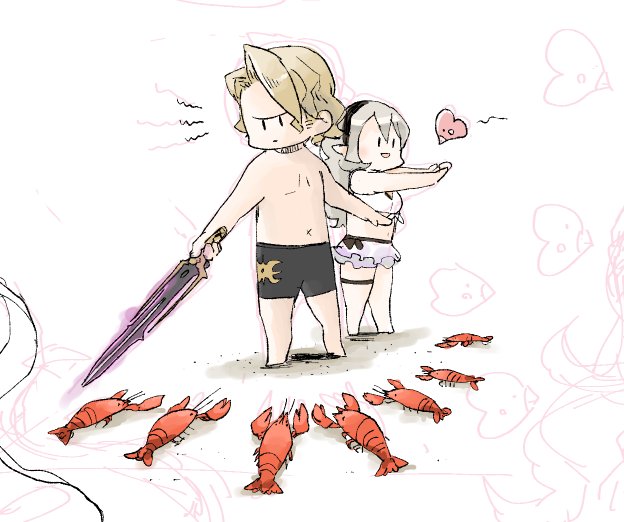 いいねの数だけマークスとカムイに 海の生き物が寄ってくる #いいねの数だけ何かが起こる を描きました。色々詰め込みすぎて水中浮き輪とか突っ込みどころ満載だけど許して