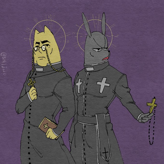 久しぶりに創作の人外2人。if人間化と漫画。 2人とも主の顔モチーフにしてやや老けてる感じ。 トムロギさんは耳とか指先が原型に近い。 2人ともサングラス掛けてるのは私の趣味かな…