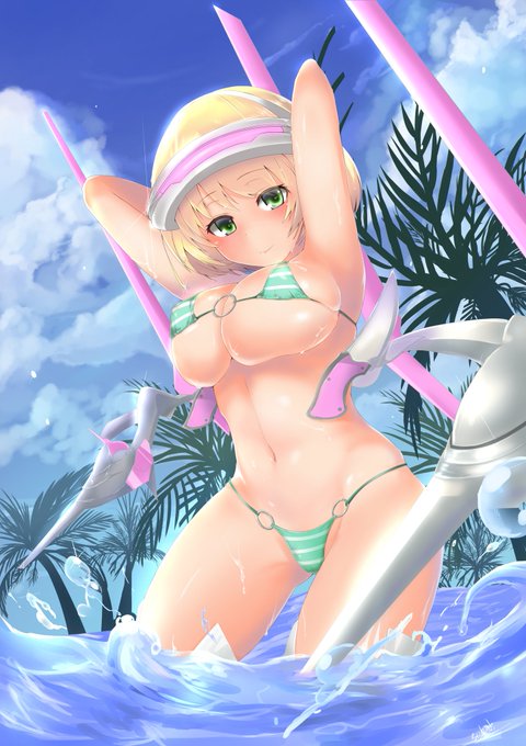 #ガンストイラスト #女性適格者マイクロビキニ部 危ない水着リューシャ 季節感無いのは赦して アンケートありがとでした!\(^^)/ イラスト本にのっける予定
