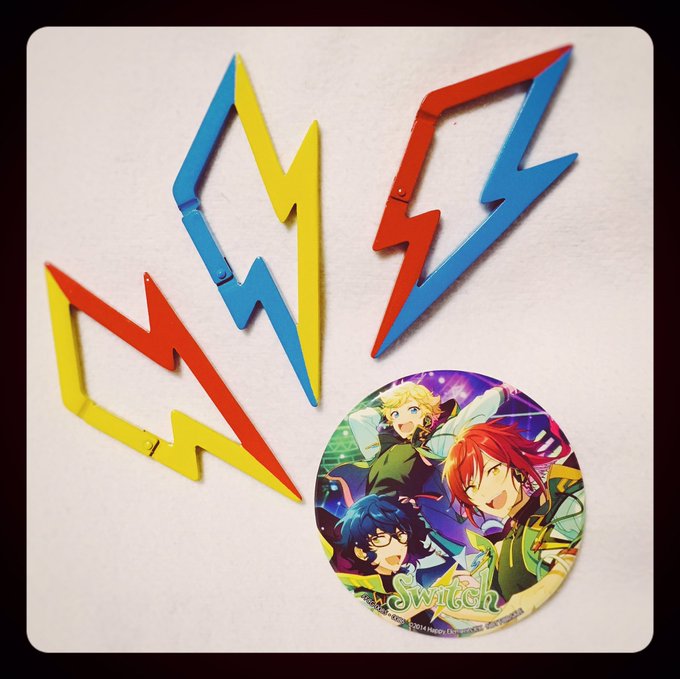 イナズマカラビナをSwitchアルバムの3人が付けてる色に塗装しました。ずっとやりたかったので一年越しに叶ってうれしい。それぞれが他の2人のカラーを付けるってのがエモい