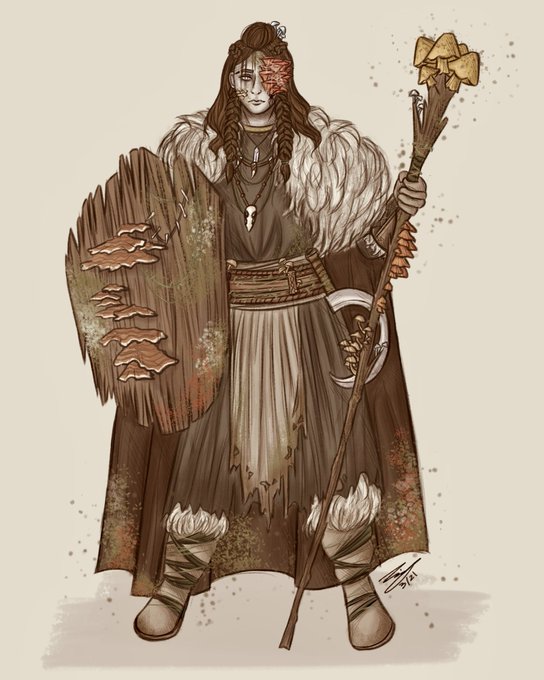 Redraw of my funky little spore druid, Vandara 🍄🍂