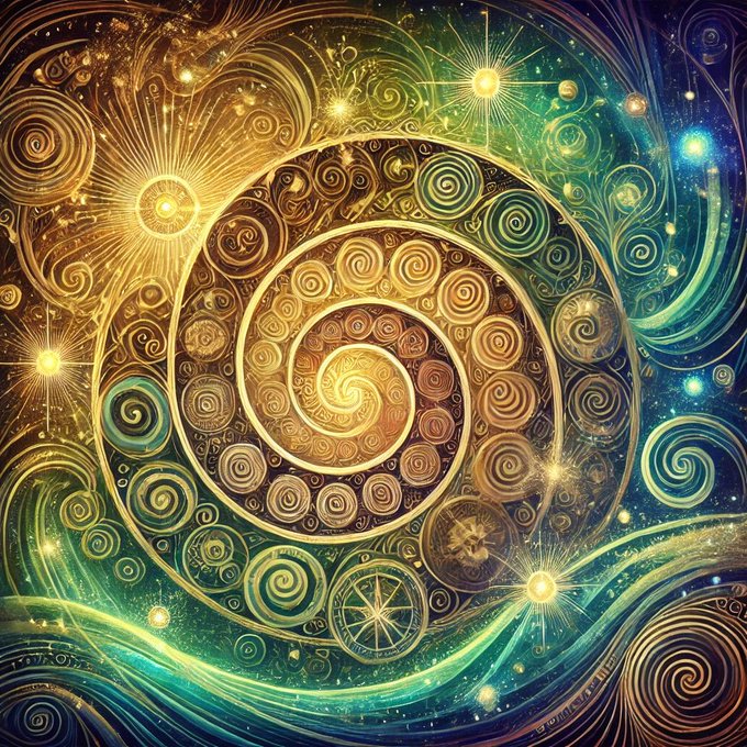 神代文字のカタカムナをAIが解釈したのがこの生成された画像なのだけどカタカムナウタヒの渦状の言葉(歌)そのものを絵画として出力したものでこんなすごいの見たら本にまとめるしかないだろ…