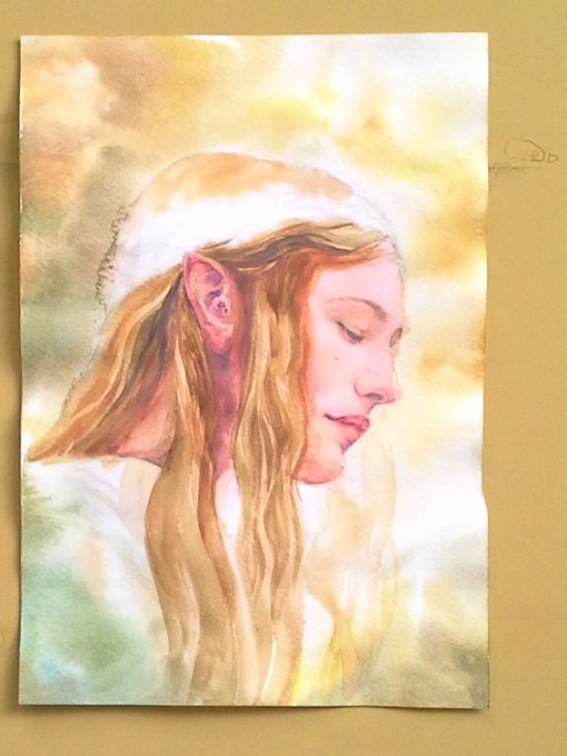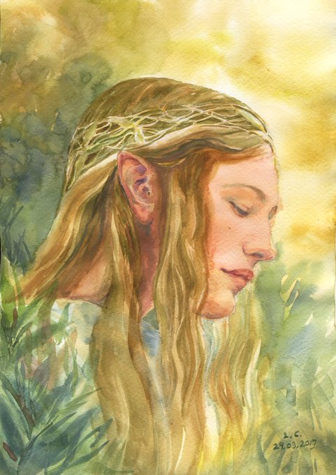 Lady Galadriel from The Lord of The Rings. Watercolor on paper.