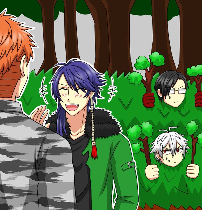 森の中で🎲帝統を見つけて「怪しい」と思った🐴左馬刻&🐰銃兎が尾行中。この距離じゃバレるだろ……