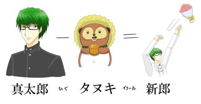 黒バスの数学的な考え方。 真太郎から"タ"を抜くと新郎になる。 真太郎-タヌキ=新郎 #黒バス #緑間真太郎 #絵描きさんと繋がりたい