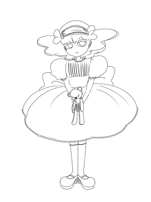 外出たくないからお嬢とお絵描きして遊んでた 暑いのヤダ 私の特にモデル無しオリジナルの線画を2人で塗り絵ー、楽しかった♪ 2枚目がお嬢、3枚目が私