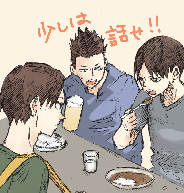 影山と国見と影山で居酒屋行くけど、影山はカレーばっか食って全然話さないの図