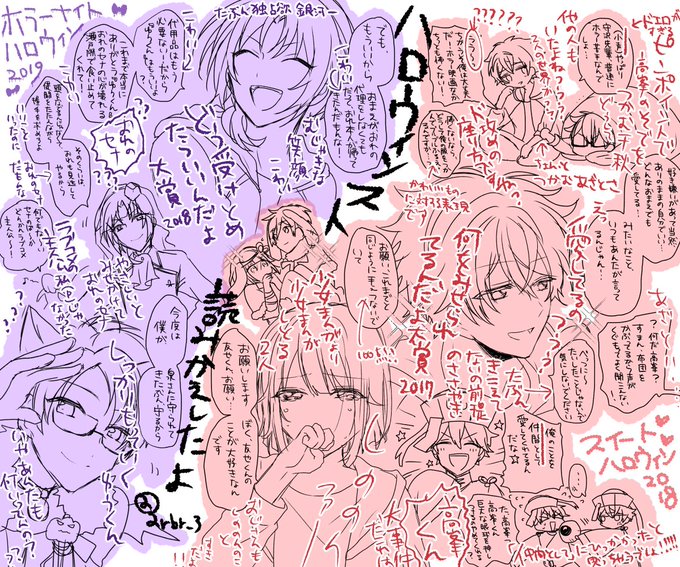 今日推しユニはろいんスト読み返して改めてはろいんて何だっけ…てなった勢い殴り描き(ほんのほんの一部)スイートはほんとにスイートを見せつけられるしホラーナイトはほんとホラーナイト