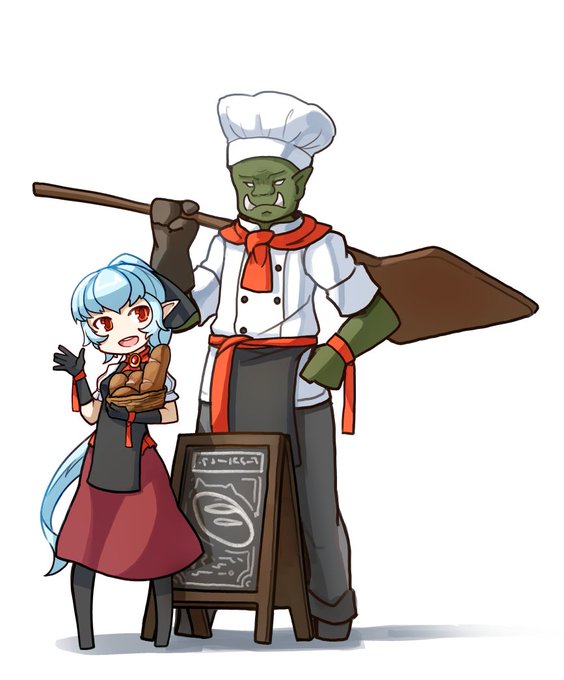 Elf/Orc Pair They run a bakery and stuff.
