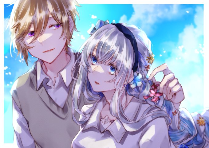 白髪黄緑紫オッドアイのふわふわめ編み込みあり女な 猯でいいかな