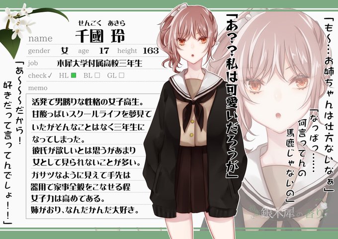こちらの企画様に【@Koi_Mokusei_TL 】二人目失礼いたします 一人目の妹です よろしくお願いします #恋木犀_CS #恋木犀_HL可