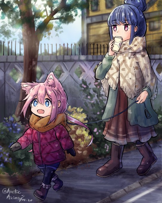 Walking her puppy #yurucamp