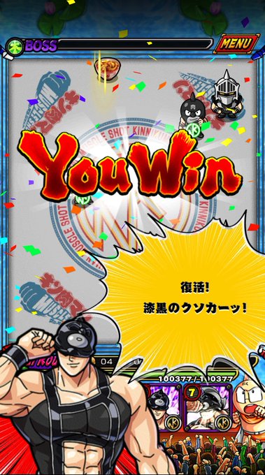 7.5周年のマッスルショットは初のゆでたまご先生描き下ろしスグルとソルジャーが登場!!! ソルジャーはガチャ、スグルは猛襲! #マッスルショット #キン肉マン
