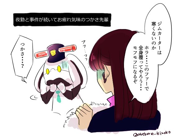 【🎩vs🚓】お疲れ気味のつかさ先輩がもふもふスリスリしたいらくがき。既出ネタだったらごめんなさい。