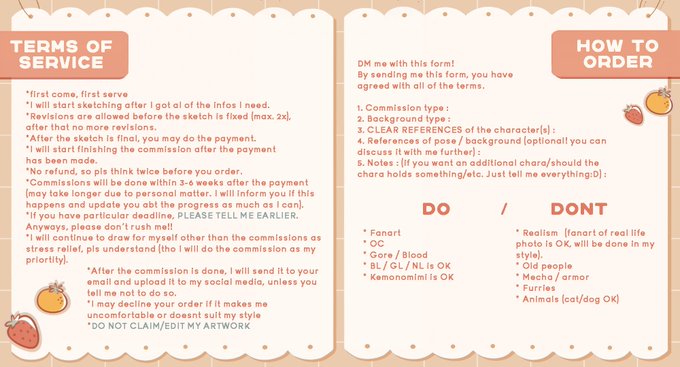 I'm opening my commission (finally), if you are interested or have any question feel free to DM me! thankyou🧡❤️