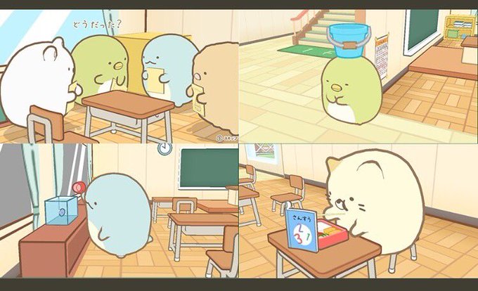 ねこちゃんwww 安定の早弁しててめちゃくちゃわろた🤣 食いしん坊なねこちゃんがほんと可愛くて大好き😘💕 ぺんちゃん、先生に怒られて罰受けてるのかな(笑) ぺんちゃんのこの安定感もホント好き🤣