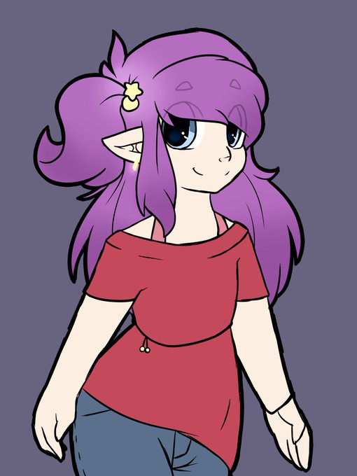 Here's her original design for reference, with her hair having a lot of different colors going on and a lot longer. Shading her took a long time because of her hair, and if I were to restart the comic, I'd try to find a way to make it look nice without serious shading.