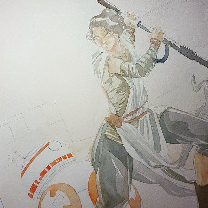 GOOD MORNING #ECCC2017 ! Drop by table R-8 & say hi! Also, I have few commission spots open #watercolor #starwars #emeraldcitycomiccon