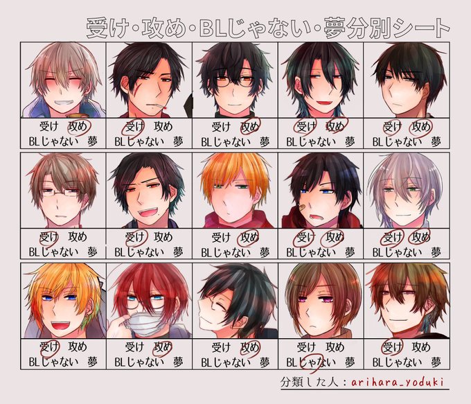 春珂ちゃん @Haru______o の受け攻め分類やってみた 両方ついてるのはリバいけそうって事で