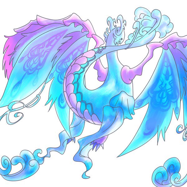 キツネの顔、龍、人間禁止、星、光、大きな翼、海