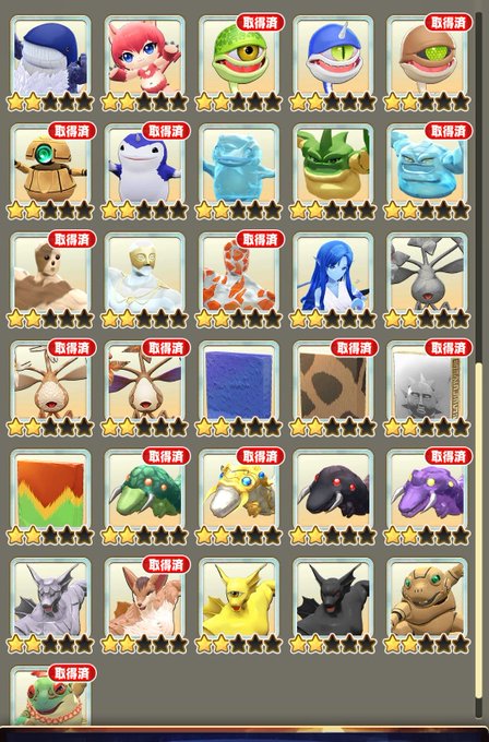 カタログ円盤石でワカクサケンザイを再生する決意を固め再生に至るまでに入手済となったモンスター達。