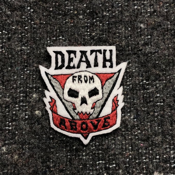 「スターシップ・トゥルーパーズ」でリコが機動歩兵隊の仲間達と入れるタトゥー"DEATH FROM ABOVE(天からの死)"の #刺繍💀 https://t.co/3NRUlqfPVC