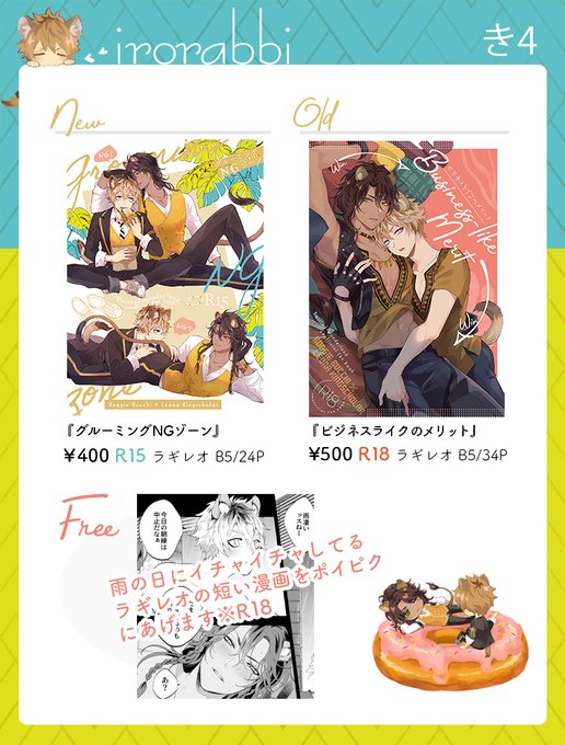 慌てて10月のラレプチのカット差し替えてきた…!感染対策した上で参加予定です!新刊が2冊…出せたら褒めて……えっちで可愛い本とブロマンスにならなかったラギレオ本を…出したいな🍩🦁