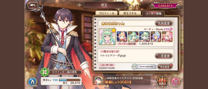 いつの間にかめーおーレベルが150レベルになったので更新!