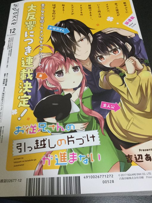 今月のガンガンJOKERの次号予告に掲載されておりましたが、来月12月号より『お従兄さんの引っ越しの片付けが進まない』を連載させていただくことになりました!お陰様でまたJOKERに戻ってくることができました。何卒よろしくお願いいたします…!