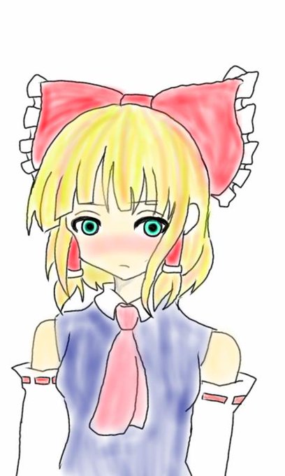 霊夢かきました。かいただけ。 色は東方を知らない友達に決めてもらいました。何故か段々アリス寄りに……なぜ? #東方 #東方好きと繋がりたい