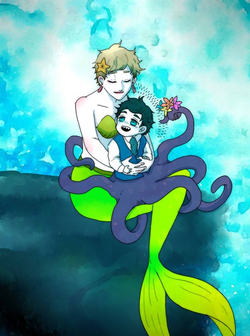 昔描いた🐙👼と🧜♀️🐿