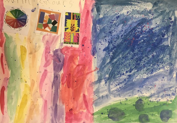 Today it was truly enjoyable to teach Yr3. We sorted out warm and cool colours by playing with mixing and brushstrokes. Students had to play and discover what happens when you mix different colours together and experiment with quantities of water. Well done Yr3! @DixonsTC