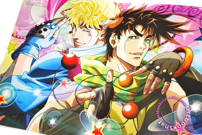 JoJo's Bizarre Adventure poster in Animage October, illustrated by Takako Shimizu, and one of the inside spreads 💎
