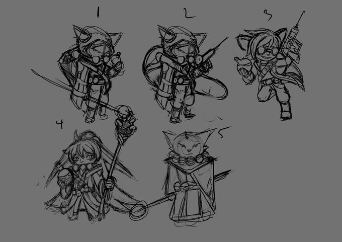 these are concept sketches of a league character concept. Yordle healing support based in zaun. design idea is done, just cleaning it up, further updates by this week