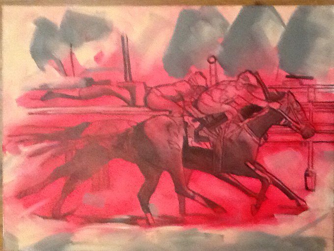 #ampainting close-up view of 18/52(?) acrylics on panel. A good artsy sign ...the fish are biting again