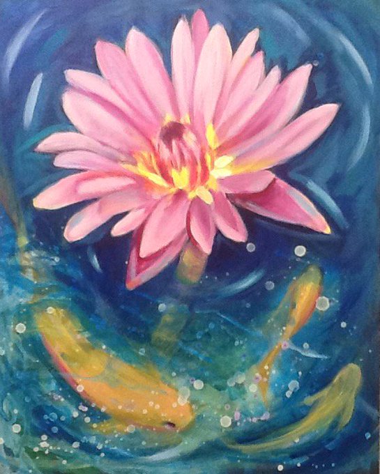 #ampainting Acrylics on panel 19/52(?) a few of my fav things - flowers, koi, & bubbles ;) 🎨
