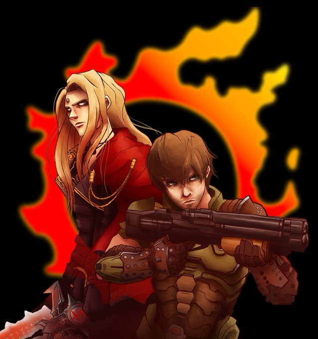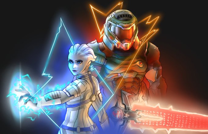Hollow Knight x Doom Eternal for Geoff's recent vid! Also shown: My before "sketch" on an old sticky note. 🙃