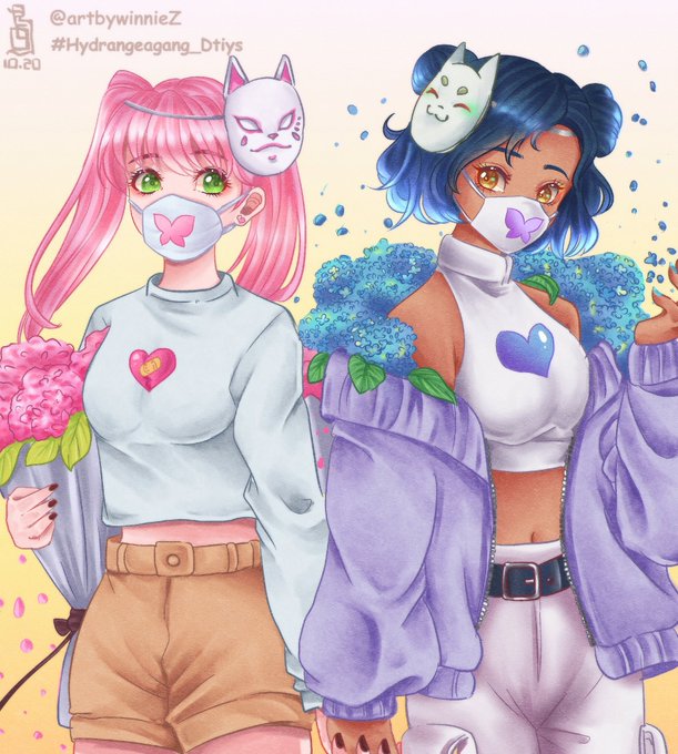 my attempt to draw @aanzzyy & @alustrations 's #Hydrangeagang_Ditys 💜💗💙🌟