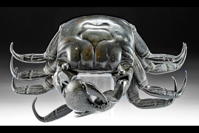 Japanese Edo / Meiji Leaded Copper Articulated Crab. East Asia, Japan, Edo to Meiji period, ca. mid 19th to early 20th century CE. A leaded copper articulated model of a crab. Estimate: $2,500-$3,500. @ArtemisAncntArt Artemis Gallery Ancient Art