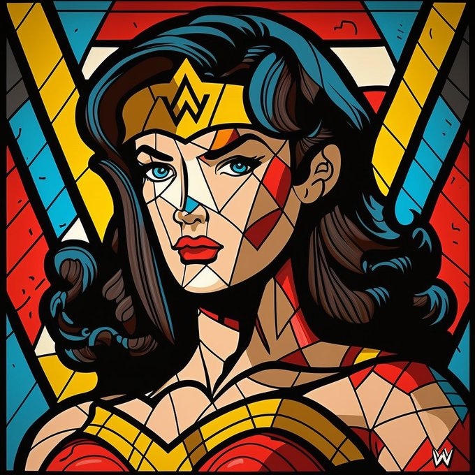 ✏️ Instrução/Prompt: #Batman #Ironman #Superman #WonderWoman painted by Romero Brito --q 2