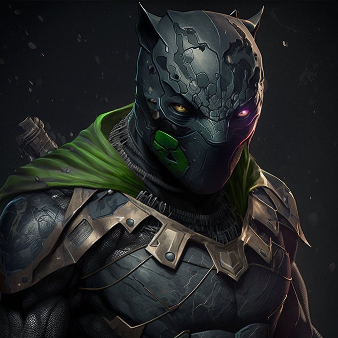 ✏️ Instrução/Prompt: #BlackPanther #Deadpool #Gandalf #SubZero as #ninjaturtle --q 2