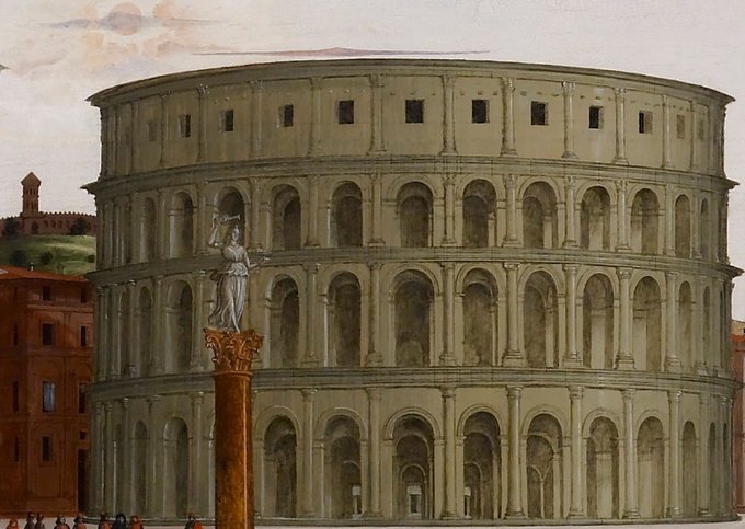Ippolito Caffi (1809-1866)- The interior of the Colosseum illuminated by fireworks.