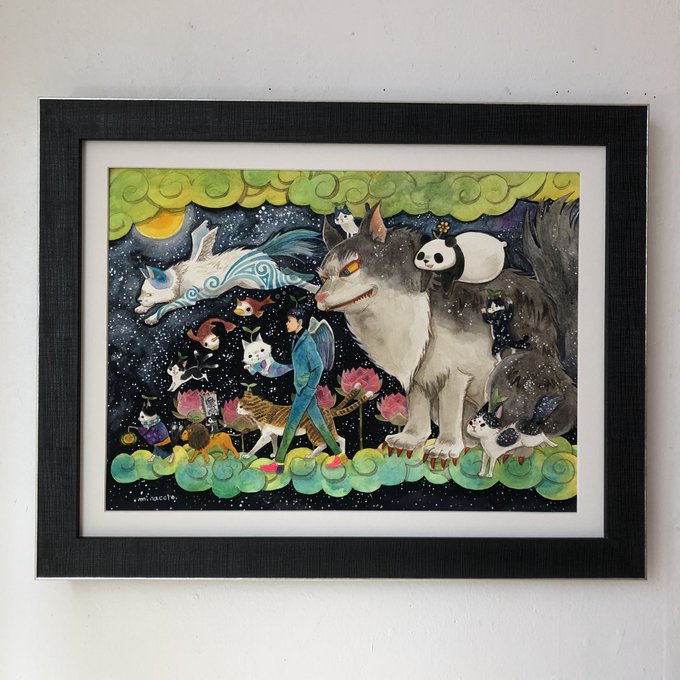 原画は手刺繡と水彩画の組み合わせです。