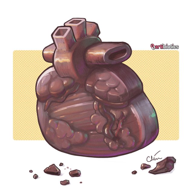 Editorial #medicalillustration of a chocolate heart, a very fun (and hunger-inducing) texture to research & paint. I made a 'complete', then a 'bitten' version, but couldn't decide which I preferred. I ended up animating the two together into this loop... #cardiac #anatomyArt