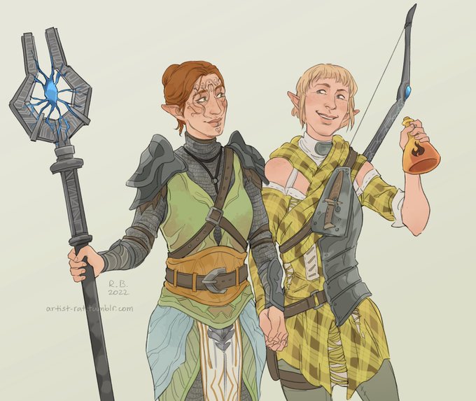 commission for @2coolfor2legs of their Lavellan and Dorian 💛💚🧡 #DragonAge