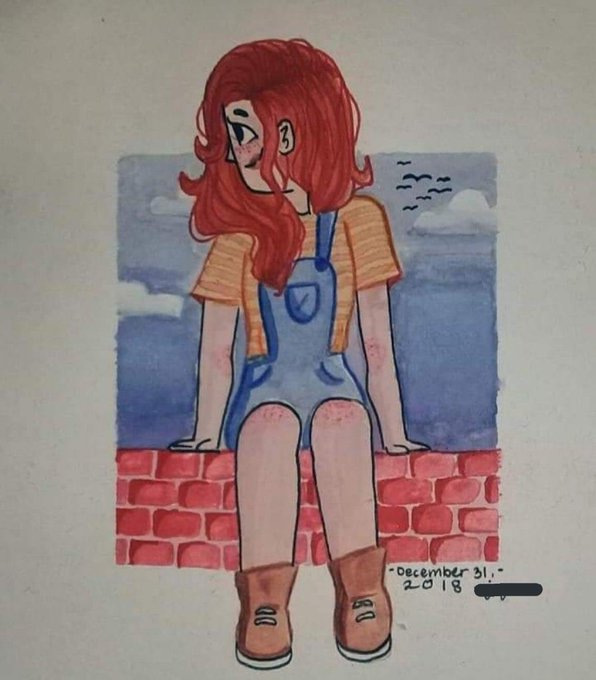 here’s my yearly redraw of my yet-to-be-named redhead, whose hair gets longer every year 🫶